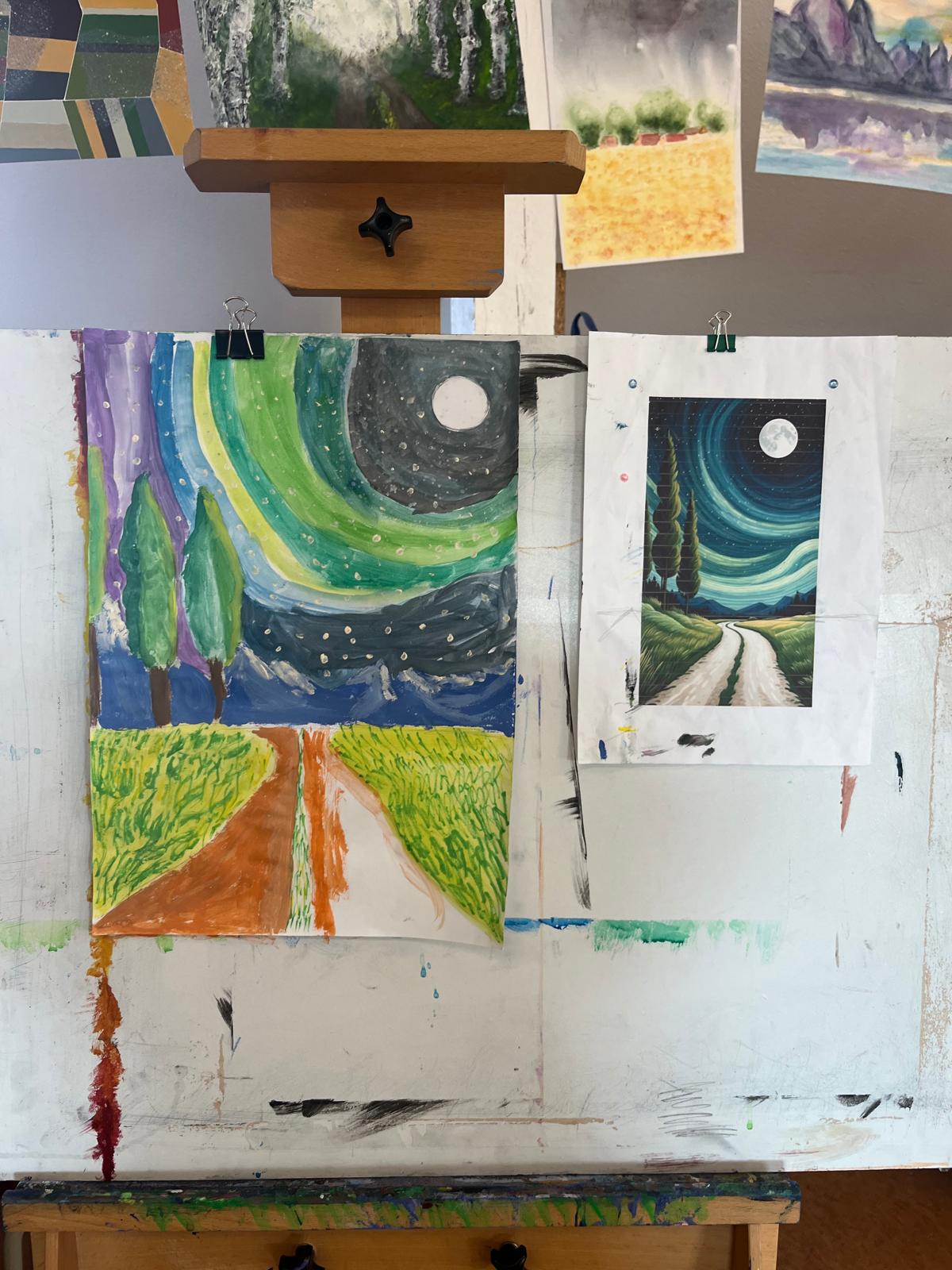 Tauchen Sie ein in eine Welt voller Farben, Formen und Ideen! Die Galerie präsentiert eine Auswahl an Werken, die in meinen Malkursen entstanden sind. Ob experimentell, klassisch oder fantasievoll – jedes Bild ist Ausdruck von Kreativität und Persönlichkeit. Nehmen Sie sich Zeit zum Stöbern und lassen Sie sich von der Freude am Malen anstecken.